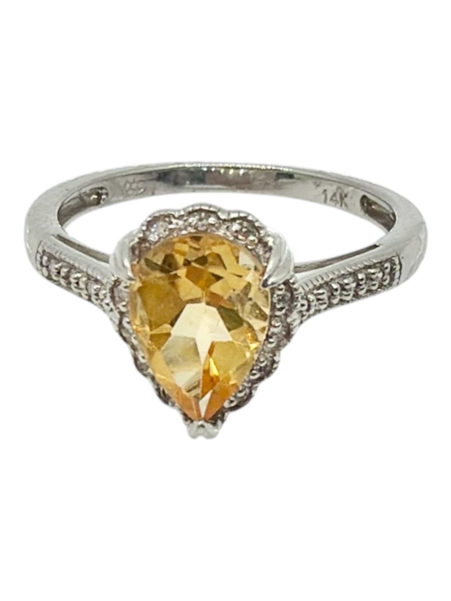 Anillo 14k blanco diamante citrina