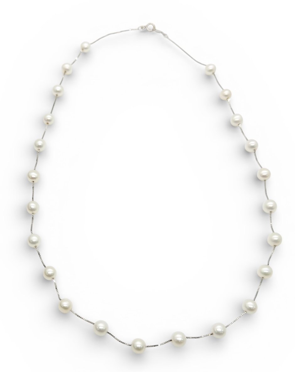 Una pieza atemporal que combina la pureza de las perlas con el brillo sofisticado del oro blanco. Ideal para ocasiones especiales o para lucir elegante todos los días. 💎
